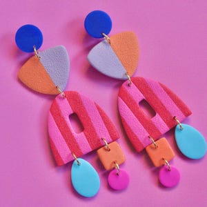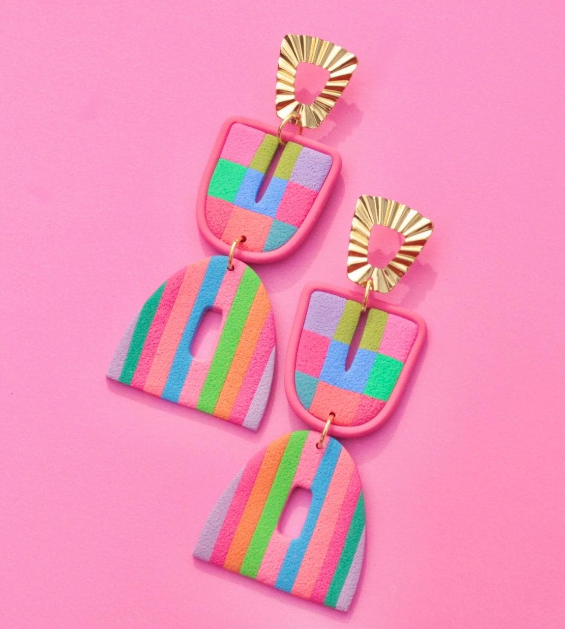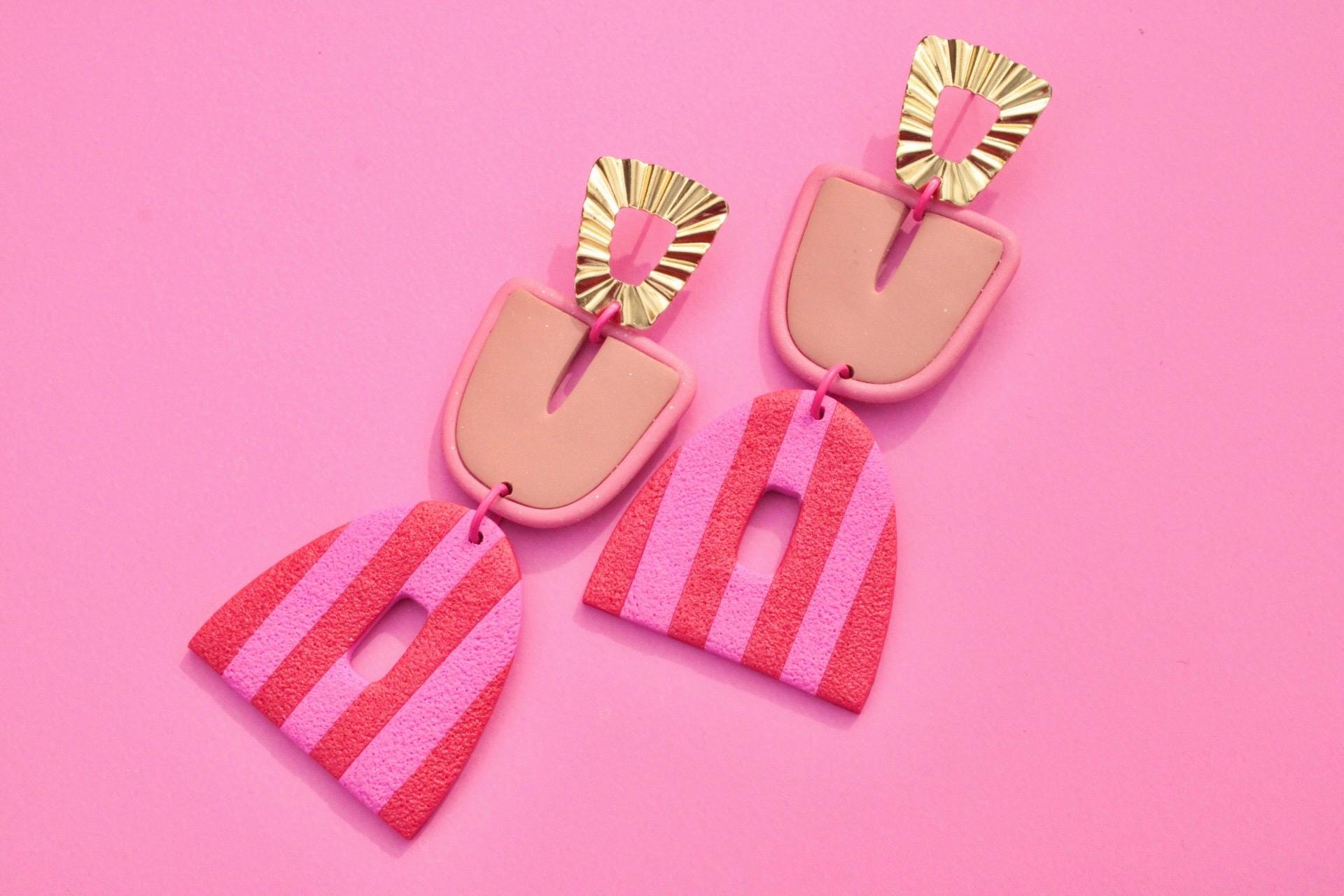 3.5 inches Textured Statement Polymer Clay Earrings. (Lightweight)